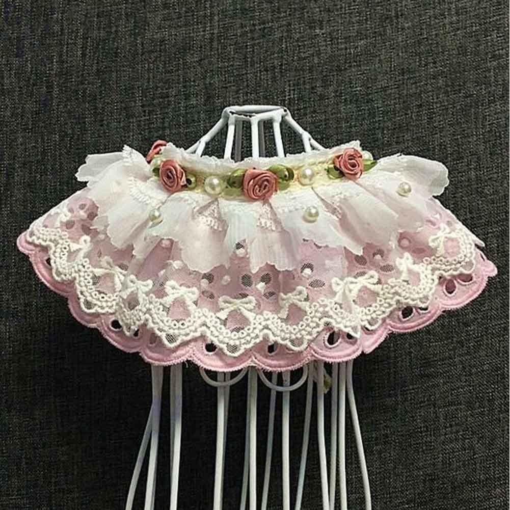 Pink Lace Collars Retro Style Handmade Cat Collars Dog Necklace 8.2-11.2"